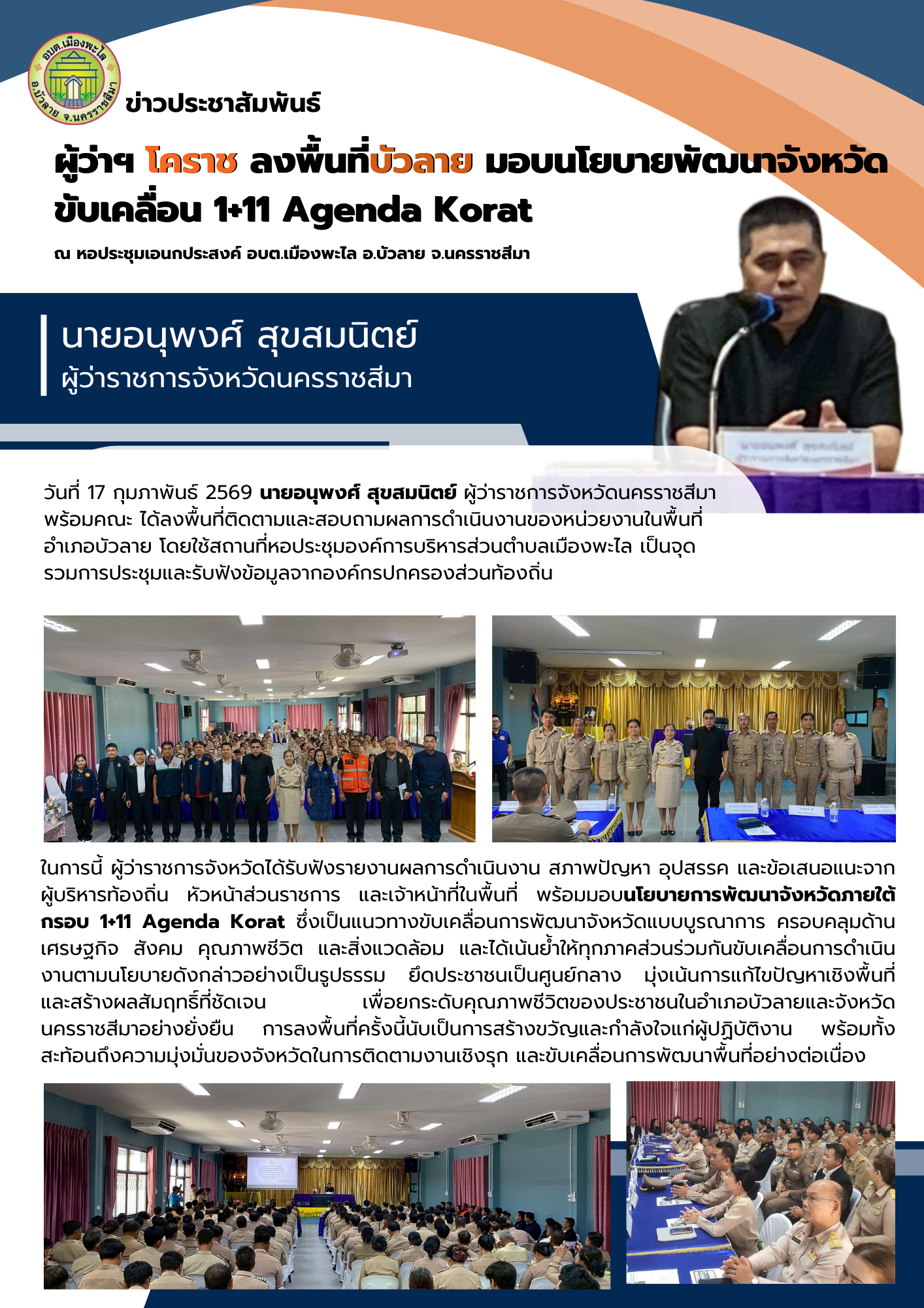 ผู้ว่าโคราช ลงพื้นที่บัวลายมอบนโยบายพัฒนาจังหวัดขั...