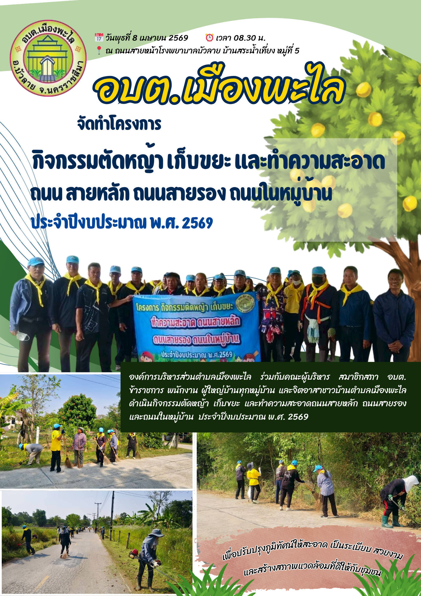 กิจกรรมตัดหญ้า เก็บขยะ ทำความสะอาดถนน สายโรงพยาบาล...