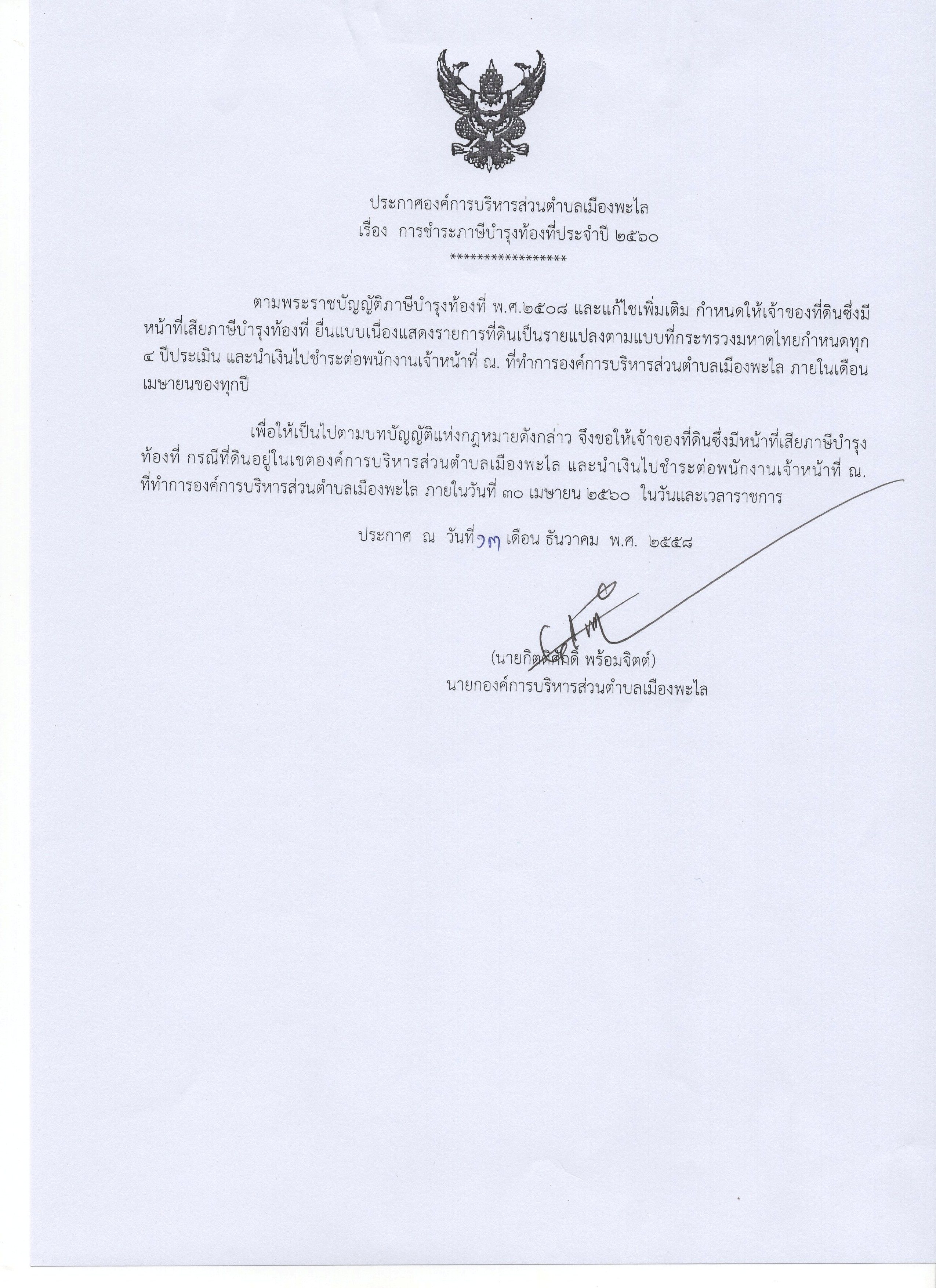 ประกาศประชาสัมพันธ์กำหนดการชำระภาษี ปี 2560 ภาษีป้าย |